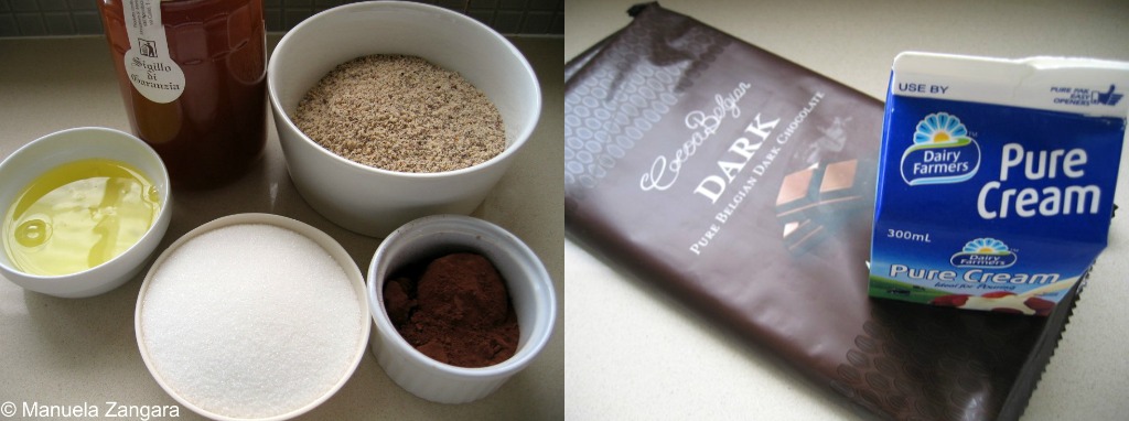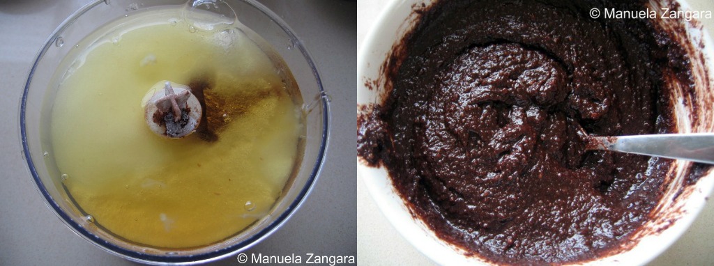 Put the hazelnut meal, sugar, honey, cocoa powder and egg white in a mixer and blend until well combined.