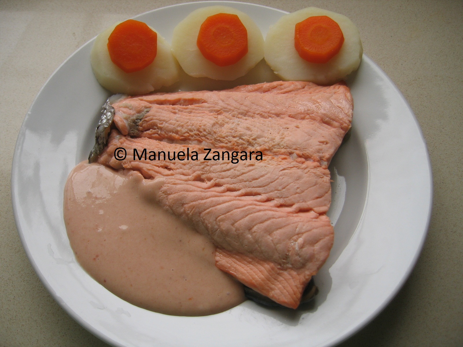 After all the Valentine’s Day sweets I needed to eat something healthy and simple… and what’s healthier than fish? This is a very quick and easy fish dish. I have always liked boiled fish with mayo… must be because when I was a child I had a nursery rhymes book about food and one of my favourite rhymes was about a fisherman who would eat his freshly caught fish with mayo! Anyhow, this is a slight variation of the original recipe as I am using mayo mixed with ketchup, and it is just as delicious.