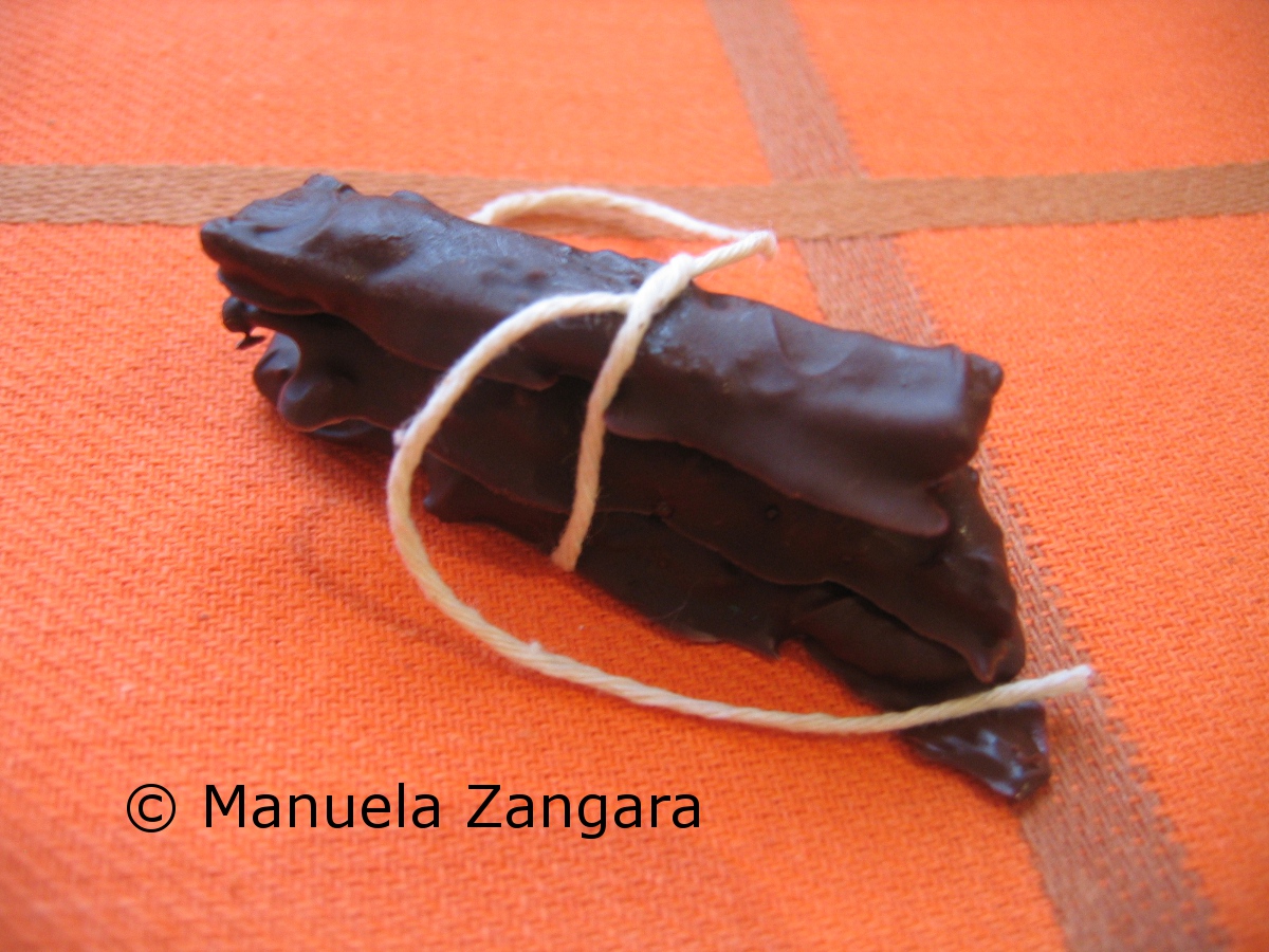 2. Take each one out and put them on a tray covered with baking paper to cool down.  Keep them separated. Once they have cooled down, you can melt some dark chocolate and dip them in it (fully or halfway).  Put them back on the tray with baking paper to dry.