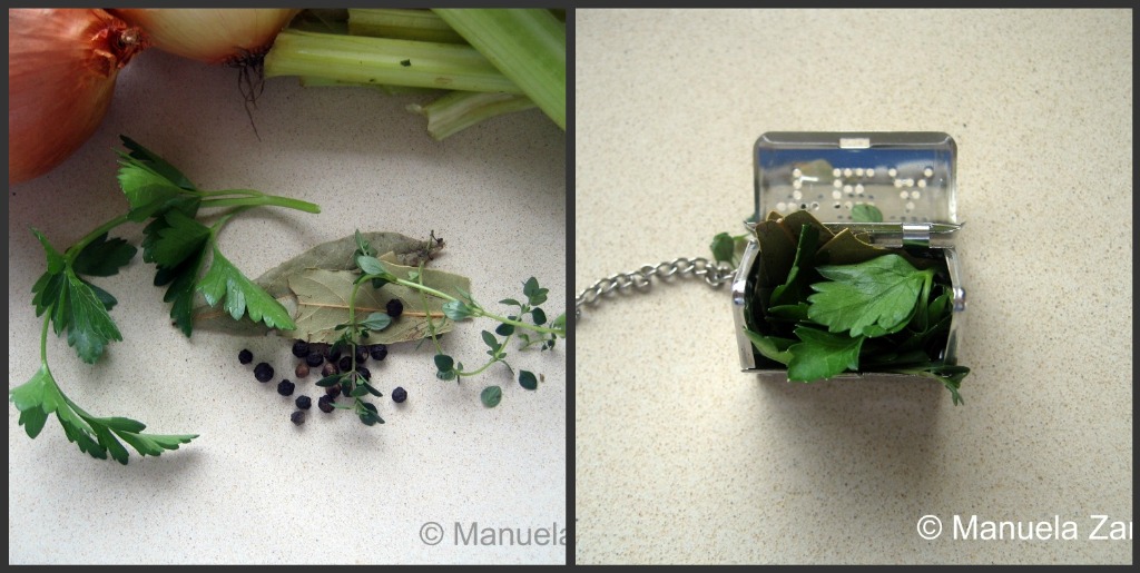 Bouquet Garni – parsley, bay leaves, a sprig of thyme and whole peppercorns