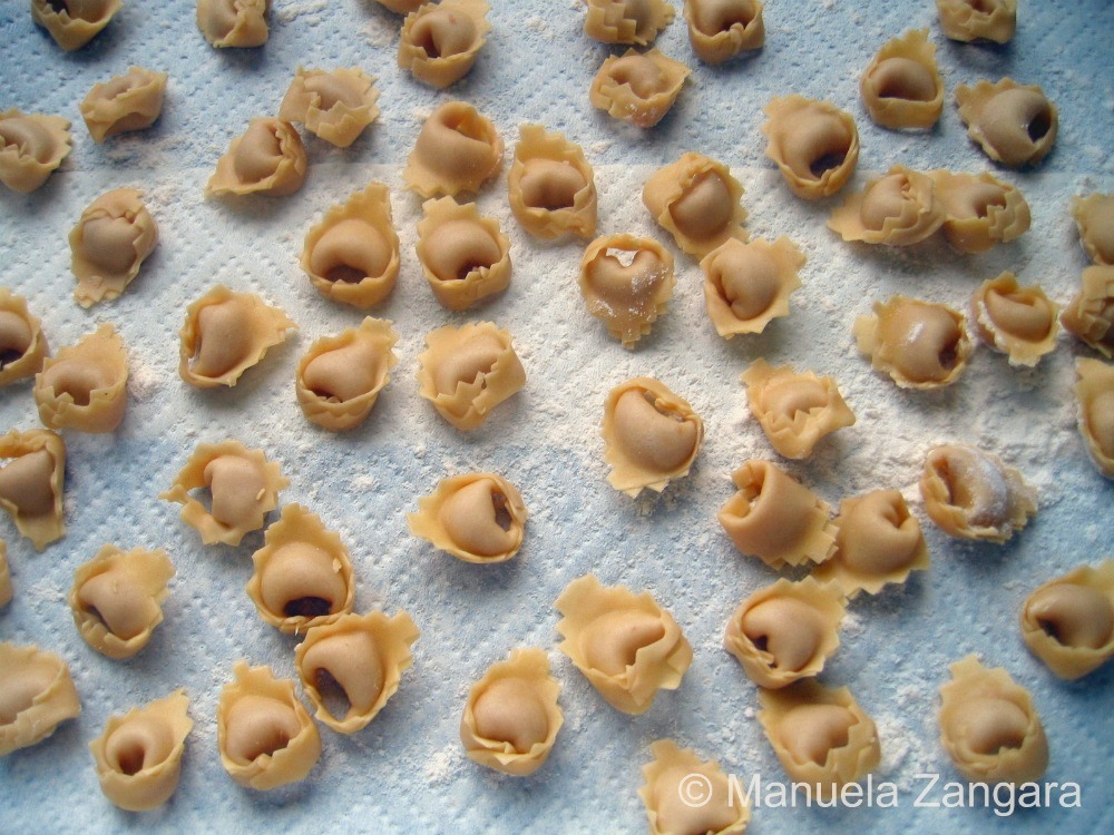 Prepare the egg pasta dough as per the instructions on How to make egg pasta dough and then proceed to make tortellini as per the tutorial on How to make tortellini (I made the smaller 4 cm tortellini to have with the Consommé).