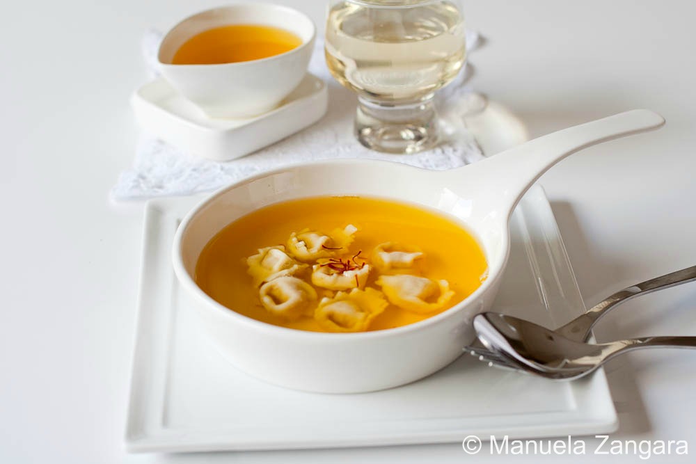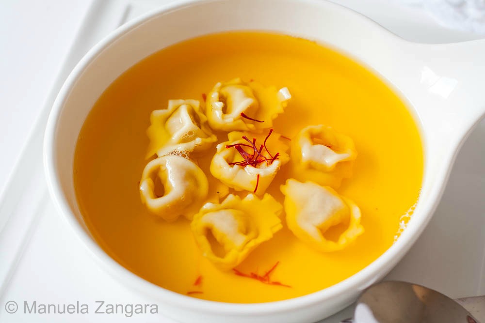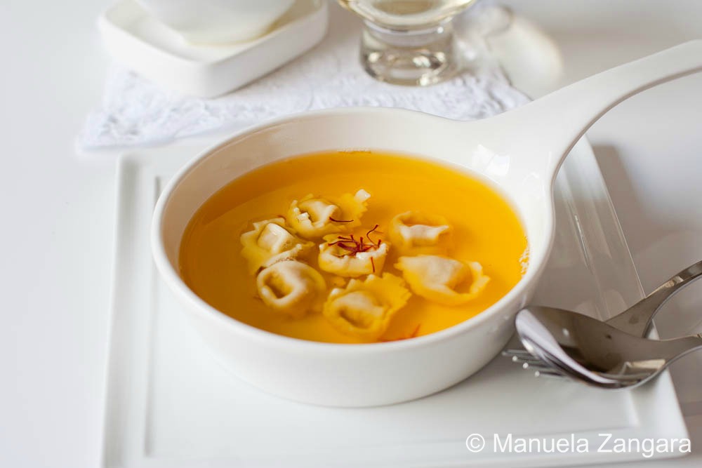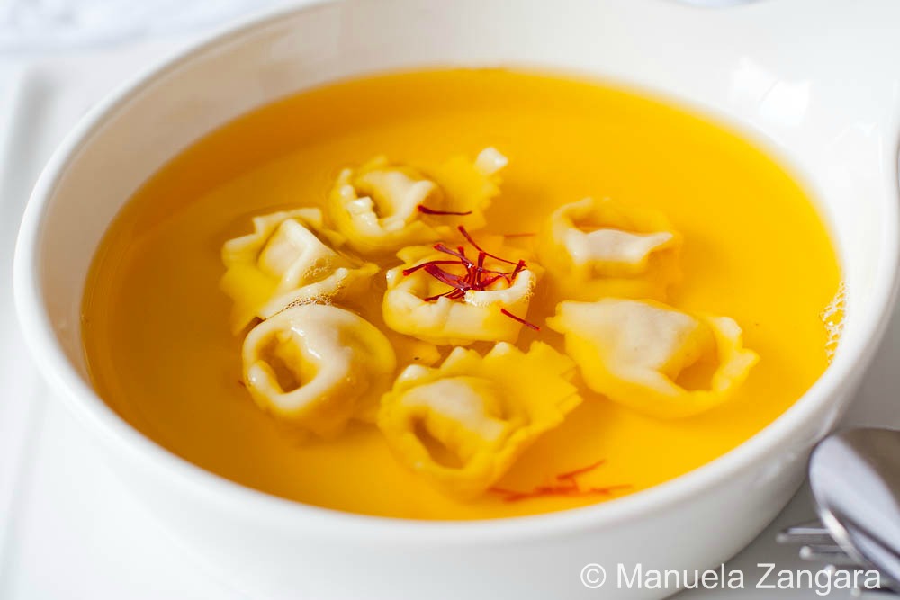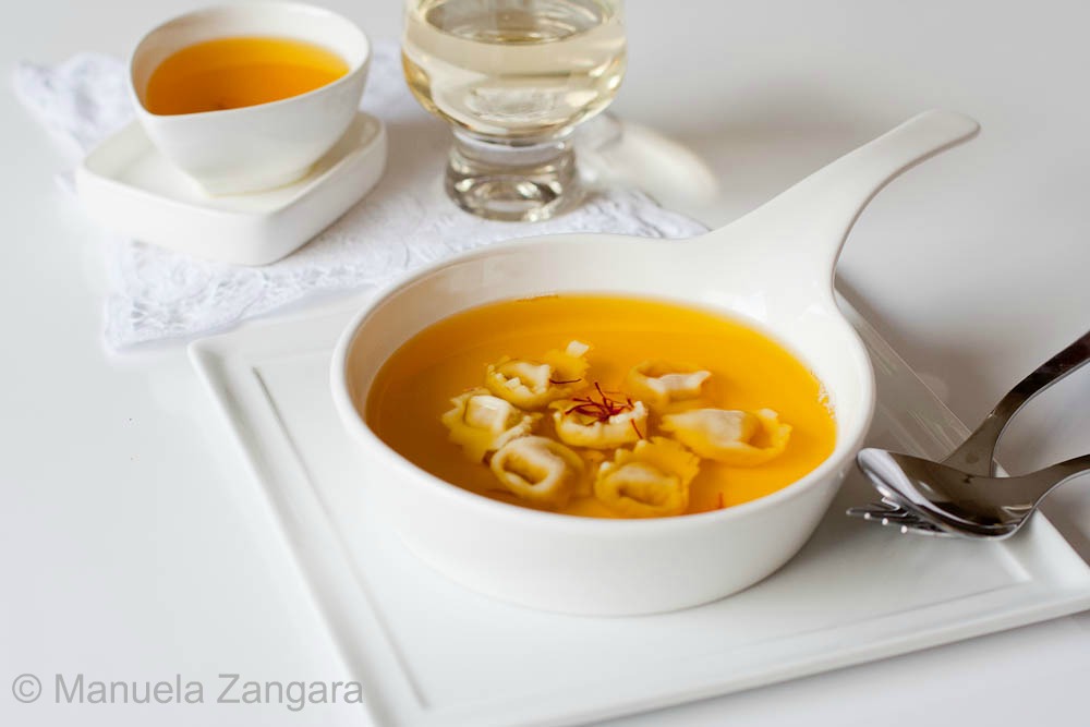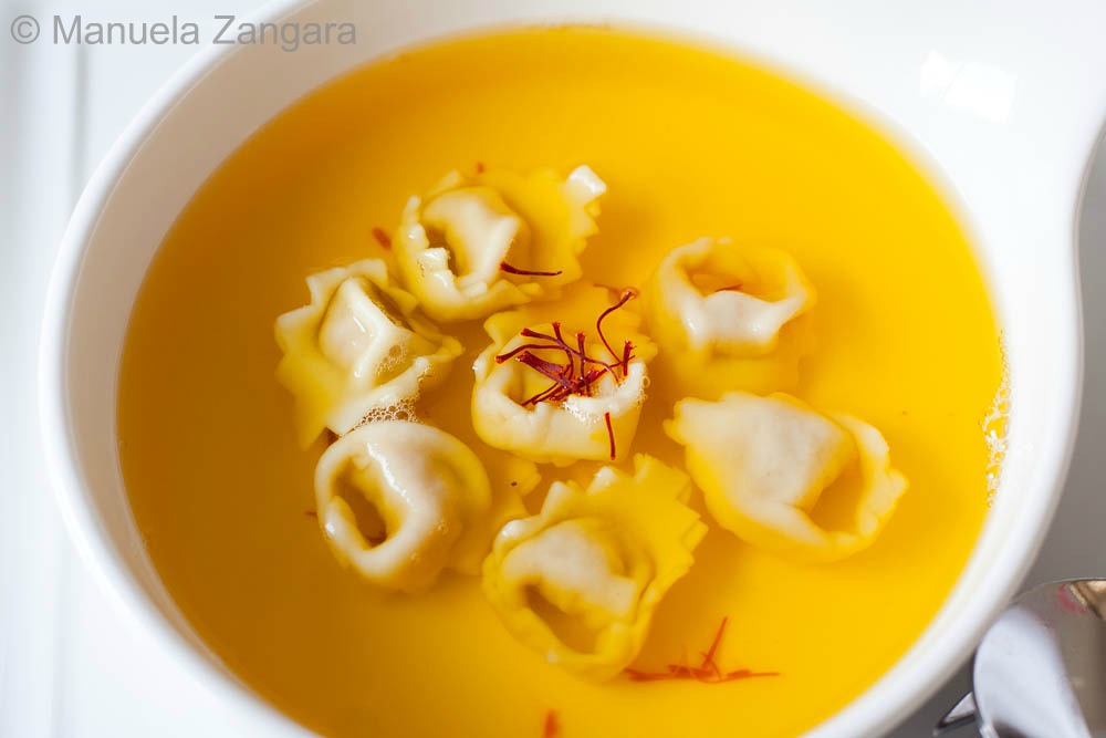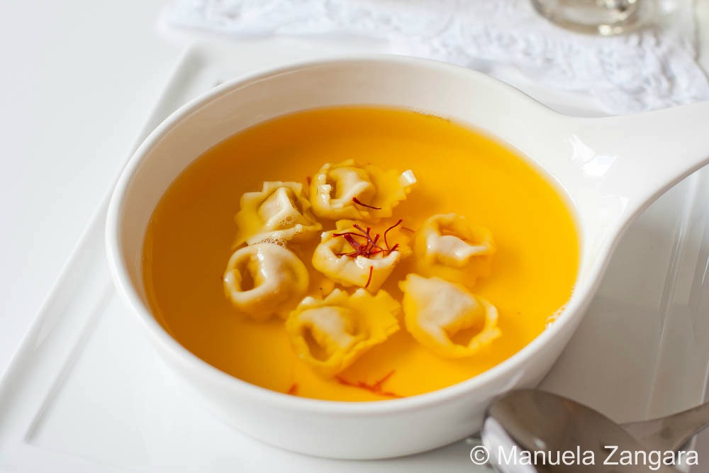 Your consommé is so beautiful! The saffron strands, those perfectly formed tortellini, crystal clear soup – wow!