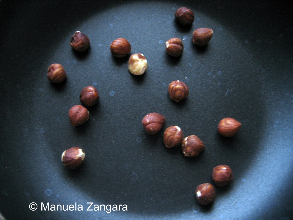 You can toast the hazelnuts by putting them in the oven for a few minutes or you can put them in a non stick frying pan and toast them on the stove. Move them around often so they do not burn. They should be ready in 3 to 5 minutes.