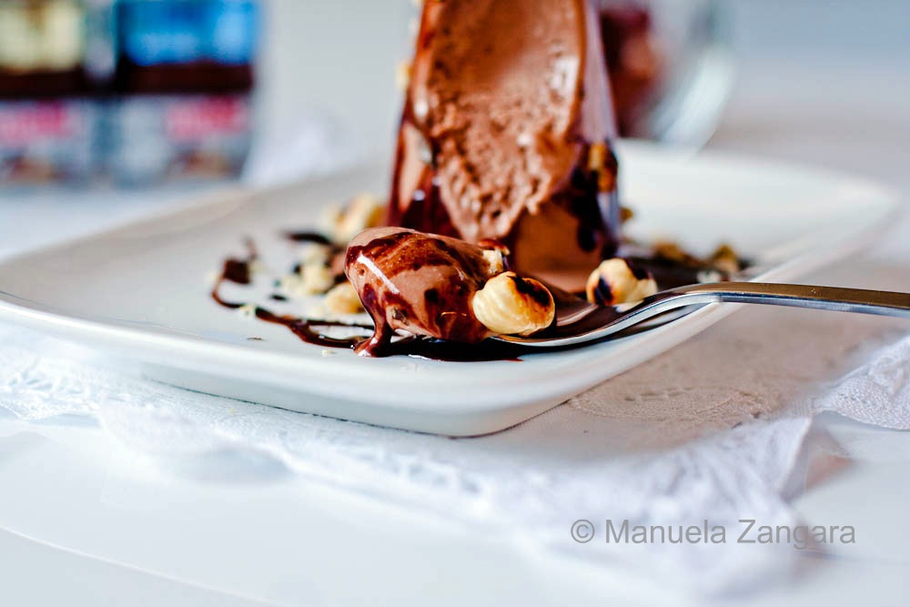 Unmould the kulfi and serve it with a good drizzle of warm Nutella sauce. Decorate with the toasted crushed hazelnuts. Buon Appetito!
