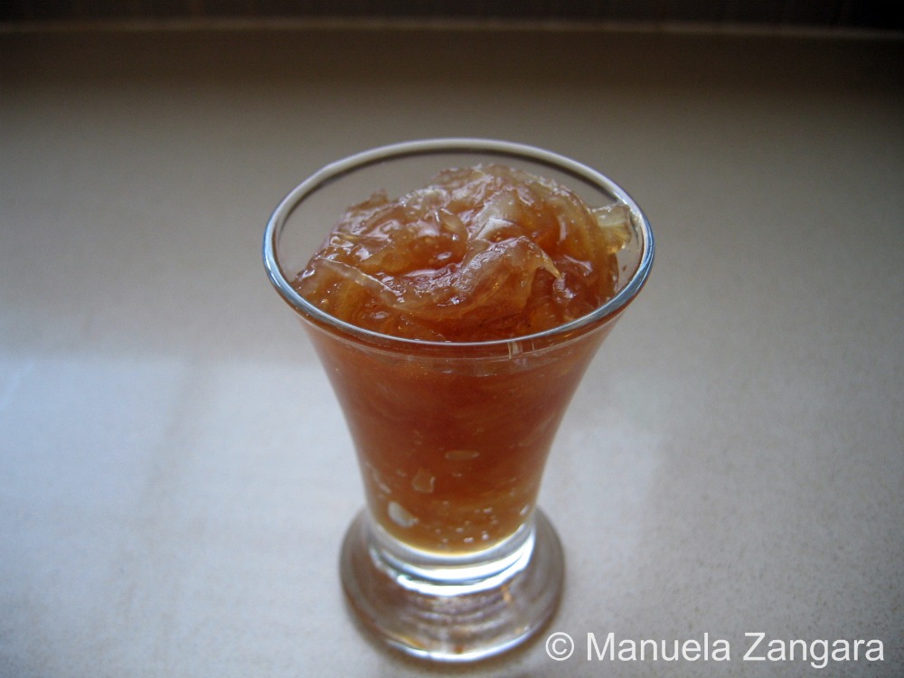 Prepare the cognac jelly. Put the gelatine sheet in cold water to soften. In the meantime, heat the cognac (do not make it boil) and then drain the soft gelatine sheet and add it to the warm cognac. Stir well to dissolve it and pour over the pate’. Refrigerate to set.