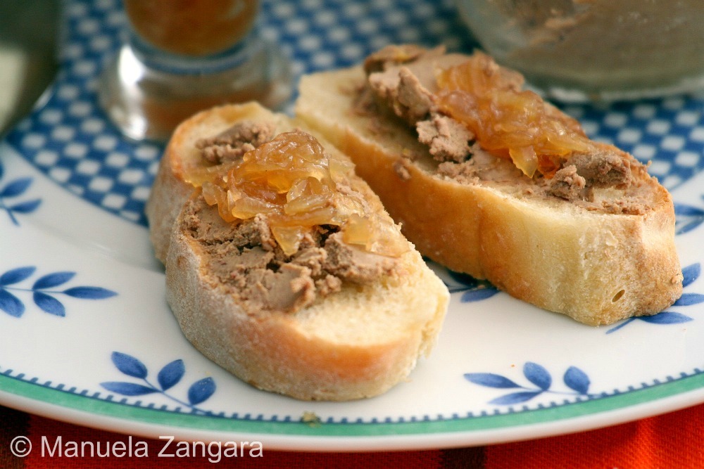 I love paté. All sorts of patés. It is another one of the goodies I used to enjoy in France and now miss a lot. True, you can find paté here too but there is not the same variety that you find in France. One of my favourite lunch items in Paris is definitely a warm baguette and a good slice of paté or terrine de canard bought from a stall at one of the beautiful markets in the city! So, when I saw some duck liver at a specialty shop in Leichhardt I bought it and set out on a mission to replicate this lunch in my Aussie home! I also made some of my favourite onion jam to go with it and ate it all with some homemade baguette!