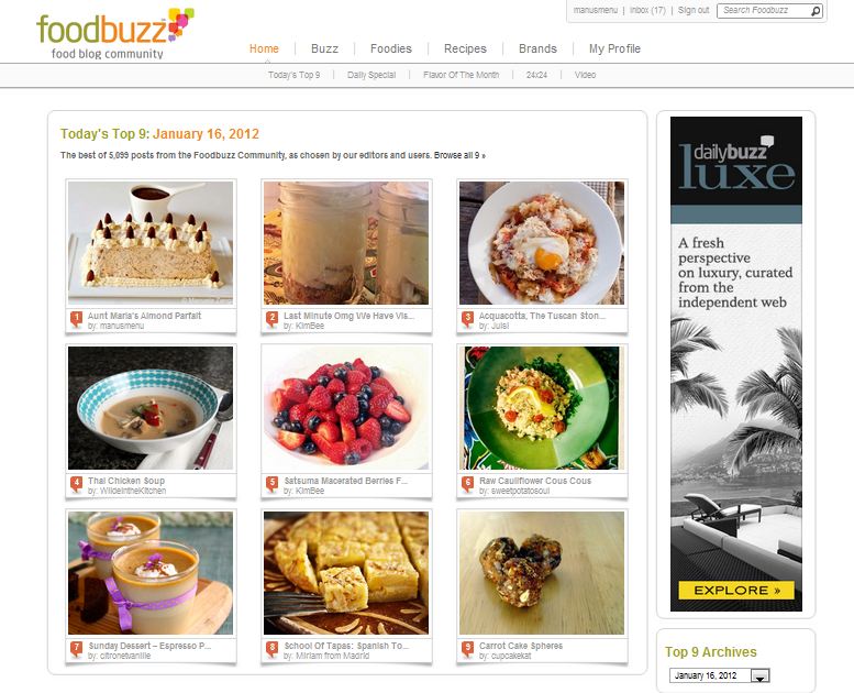 On FoodBuzz Top 9 of March 31, 2012 with Cabbuci.