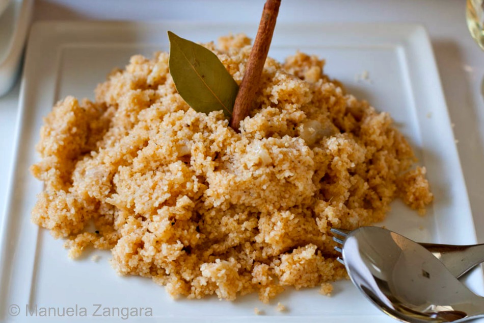 I love couscous di pesce. It is always a special day when my mother in law makes it. She, too, makes the couscous herself and fries some calamari to eat alongside. She also makes rings out of the left over dough that she uses to join the two pots…but I can’t remember what they are called. Maybe you know? This looks exceptional (complimenti alla mamma): I bet it was a really special Christmas meal. Did you bring the mafaradda all the way from here?