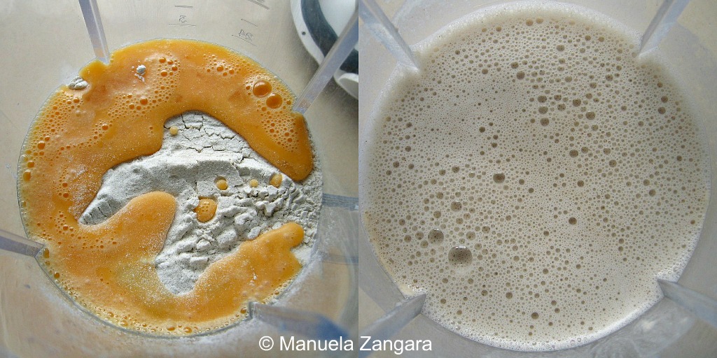 Put all the ingredients in a blender and mix well. Let the batter rest in the fridge for 1 hour.