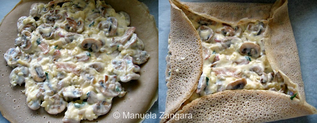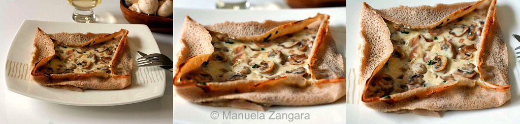 This was my first attempt to recreate a fantastic dish that we ate at Crêperie La Gavotte in Nouméa (New Caledonia) during our holiday in October. A galette bretonne is very similar to a crêpe, but it is made with buckwheat flour and, as the name suggests, it is originally from the French region of Bretagne. The filling is made of mushrooms, pancetta and Emmenthal cheese, with a little cream and béchamel to make it smoother. It is a very easy and homey dish and even though the galette did not come out as crispy as the one eaten in Nouméa, we all agreed that it tasted almost the same. One thing is for sure… I won’t stop experimenting with them so easily! 😉 Enjoy!