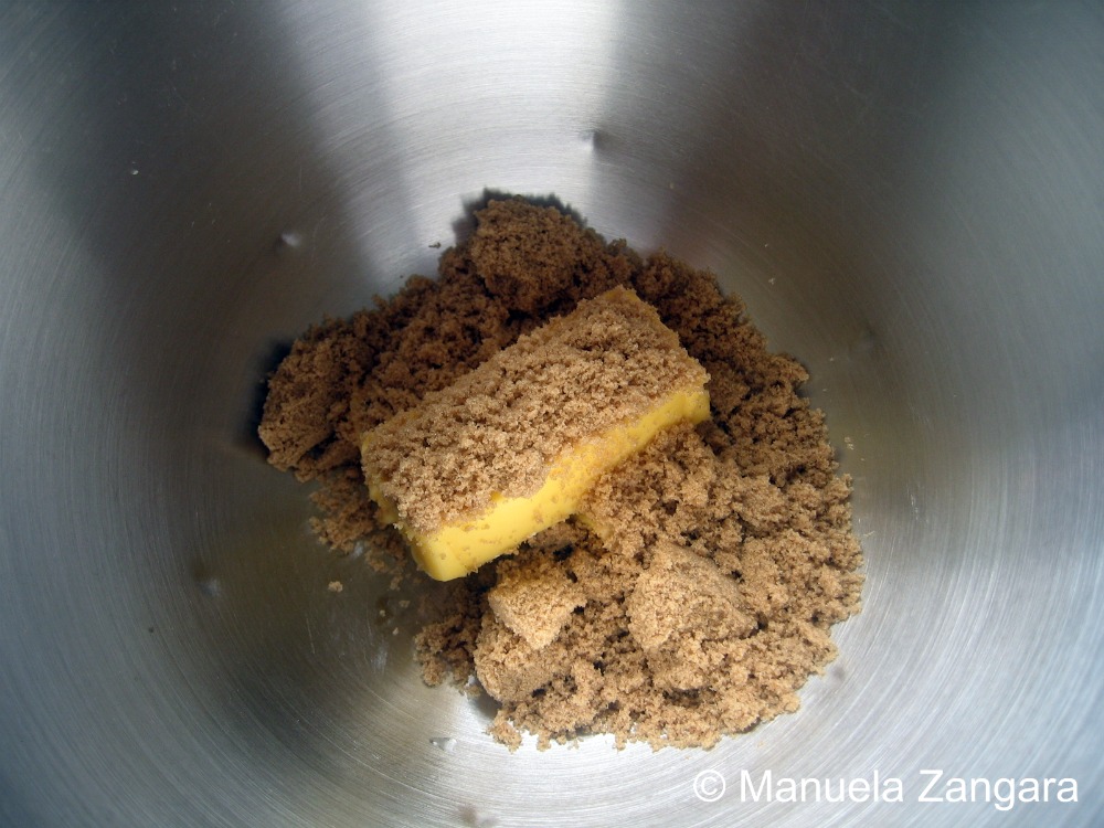 Beat the butter and brown sugar together with an electric mixer till fluffy and pale.