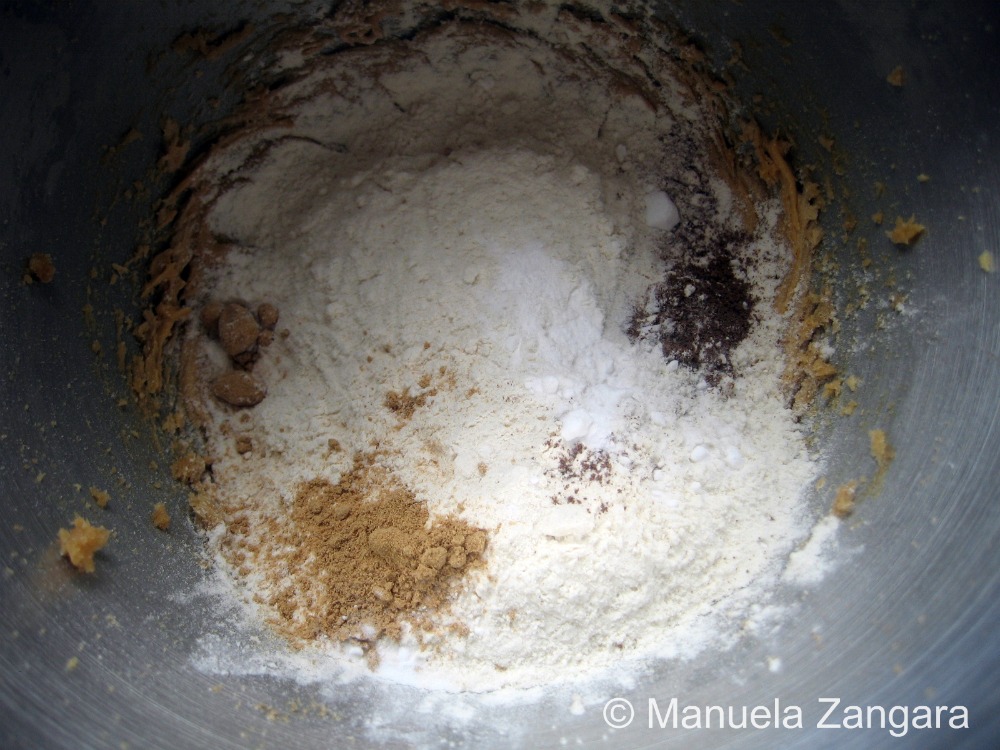 Stir in the flour, ground ginger, mixed spice and soda bicarbonate.