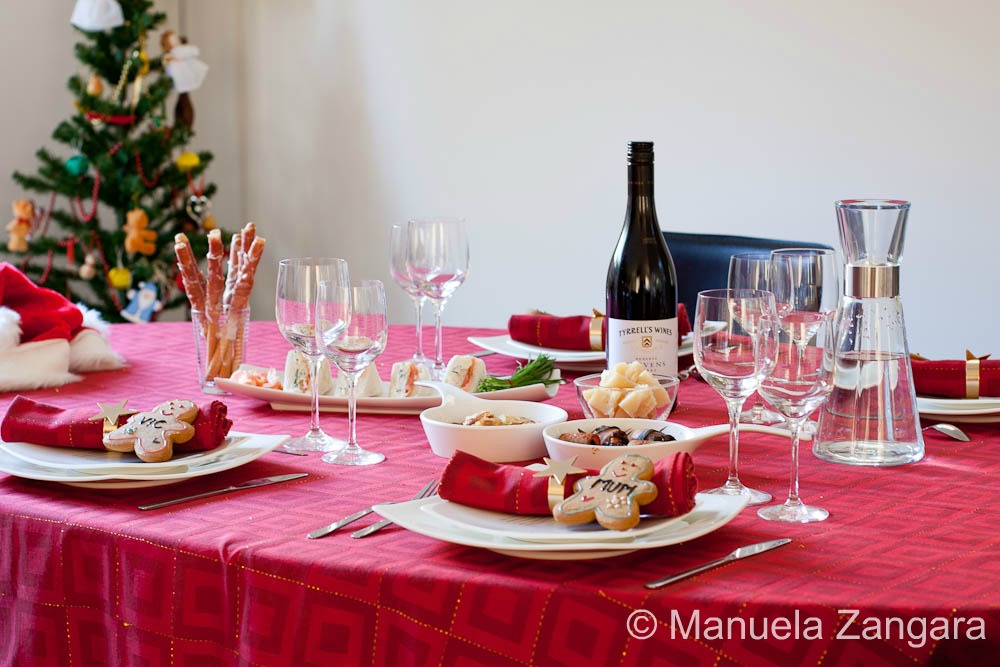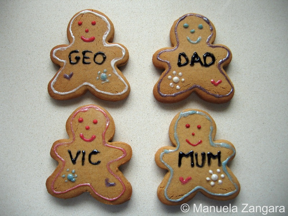 These are definitely not Italian traditional cookies, but I have always loved them and I have made them every Christmas since moving to Australia (my girls leave some on a plate for Santa to eat on Christmas Eve along with a glass of milk…). I guess you could say it’s an “acquired” tradition in our family. For my Foodbuzz 24×24 Christmas in July event I could not resist the temptation to make some and use them as decorations. I made 4 regular size gingerbread men to use as signposts and 1 bigger gingerbread man to use with our centrepiece. I decorated them with writing icing and gels: it was so much easier to write our names this way! The girls helped out too and we had a fun time making these together! Highly recommended as “family entertainment” for your next Christmas!