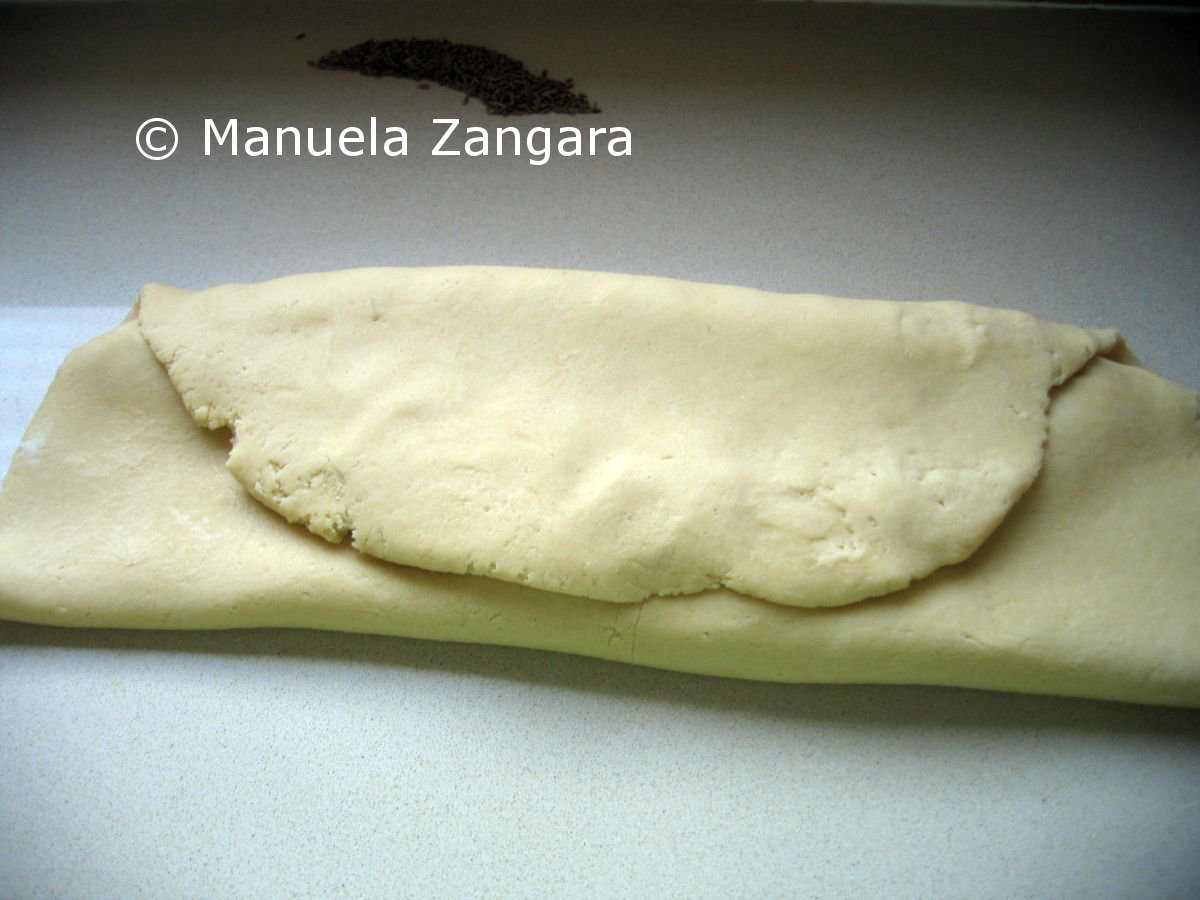 Roll the dough, fold it in 3 and let it rest for another 10 minutes.