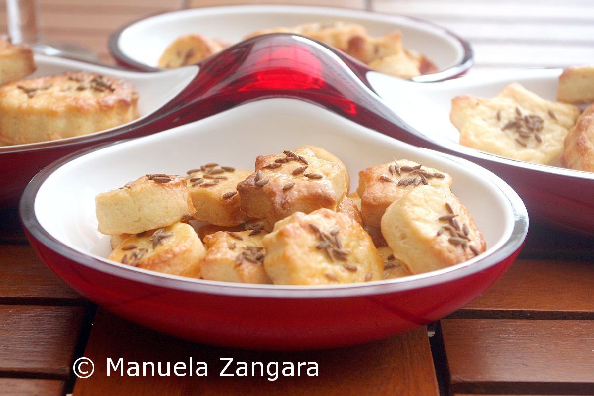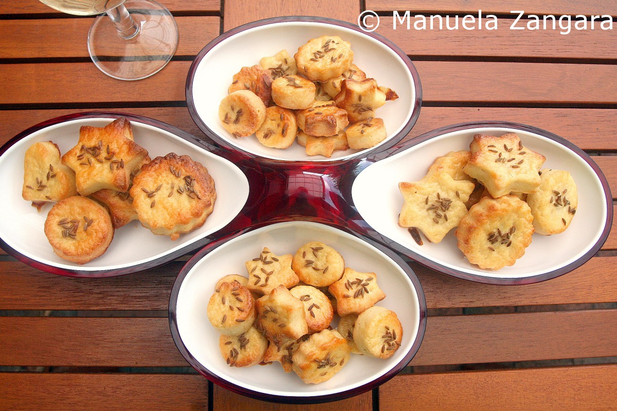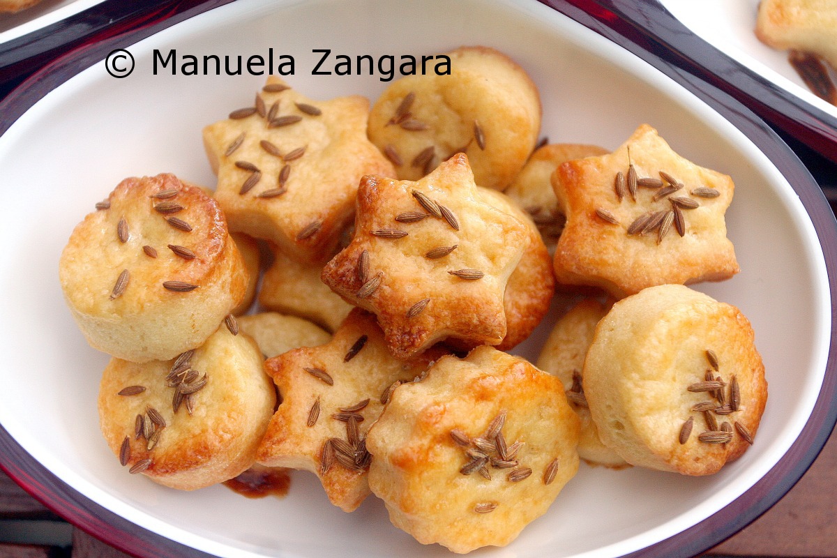 These salty pastries (called pogácsa in Hungarian) are a recipe of a dear friend of my mom’s, Judith. She is Hungarian and used to make these often for me when I was a child. I like them a lot and they are very versatile: perfect for an afternoon snack or as an “aperitivo” before a meal together with a cold drink. The yogurt gives them a slightly tangy flavour while the caraway seeds add that extra kick that makes these salty pastries special. Try and make these with your kids, they will love helping out with the cookie cutters and all the different shapes.