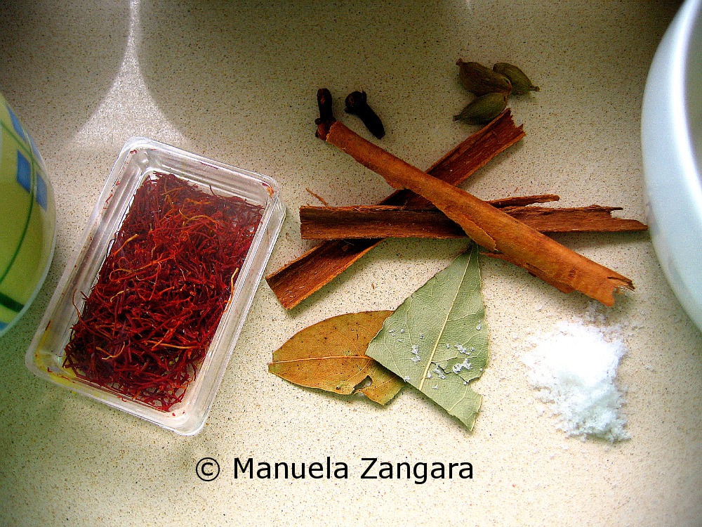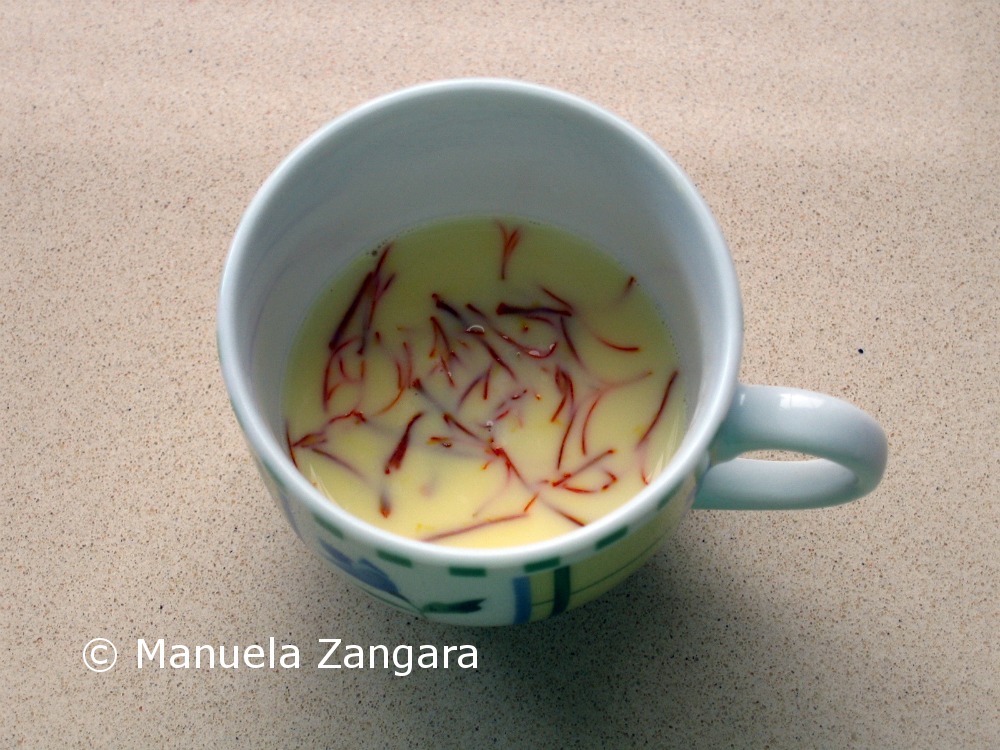 1 pinch saffron threads dissolved in 2 tbsp of hot milk