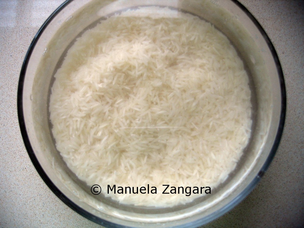 Clean, wash and then soak the rice in 3 cups of water for 30 minutes.