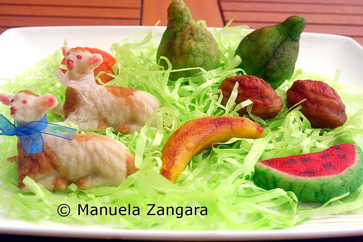 Yes… yet another almond based treat and another traditional Sicilian sweet. I love it. It was my favourite sweet as a child and if you look at the colourful shapes, you will easily understand why. You children will love it too, trust me. My 3 year old daughter could not stop admiring them… until she gave the first one a bite… then there was no way to stop her from devouring them!