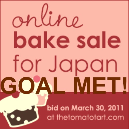 Well, I am very glad to inform all of you that we not only managed to reach the $2,500 mark, but we more than TRIPLED it! We managed to raise $8,269 that will be donated to Second Harvest Japan. I want to thank ALL the bloggers (more than 90!) that so generously donated their fantastic goodies (and time) for this special cause. I am relatively new to this blogging community and I have been overwhelmed by the response of all these great people. You are fantastic! I want to give a special thanks to Sabrina from The Tomato Tart, the charming host of the Bake Sale. Despite some technical difficulties she managed to pull the auction off splendidly. She worked really hard for this and I am very grateful to her for launching and organising this event. THANKS Sabrina! Also, thanks to Angi from Rice and Wheat for coming up with a great “bidding form” which was really helpful!