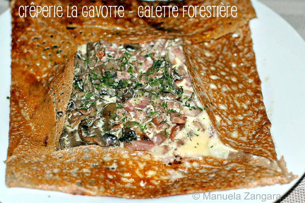 But the real stars of the show were their galettes [bretonnes]: savoury buckwheat flour pancakes/crêpes. We ordered a Galette Forestière filled with mushrooms, bacon, cream and Emmenthal cheese.