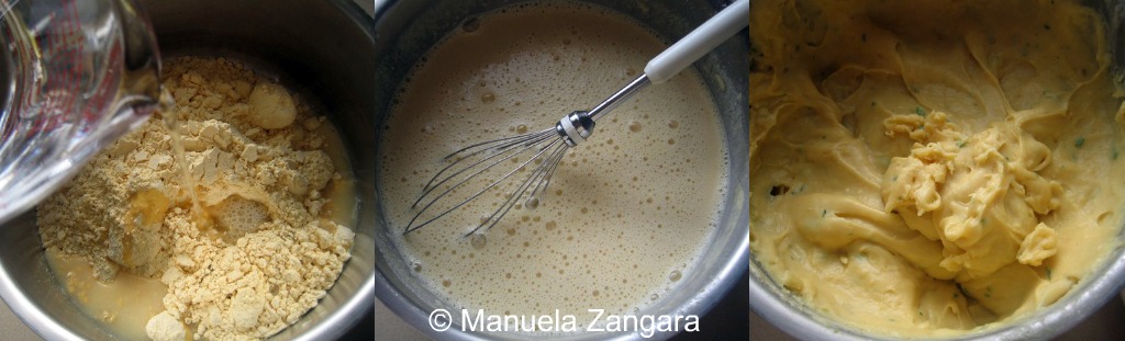 Panelle are, together with cazzilli and arancine, the most famous Sicilian street food, and that is why I immediately knew I had to feature them on the menu of the Sicilian Street Food New Year’s Eve Party I organised for this month’s Foodbuzz 24×24 event! They are delicious on their own when eaten hot, but they become the best fast food if eaten in a warm Mafalda roll. It is a dish of Arab origin, like many others in the area and they are so easy to make, you may not believe me… but I have pictures to prove it! 😉 Would you believe that all you need is chickpea flour and water?? Read on to see how these 2 simple ingredients transform into such an amazing treat!