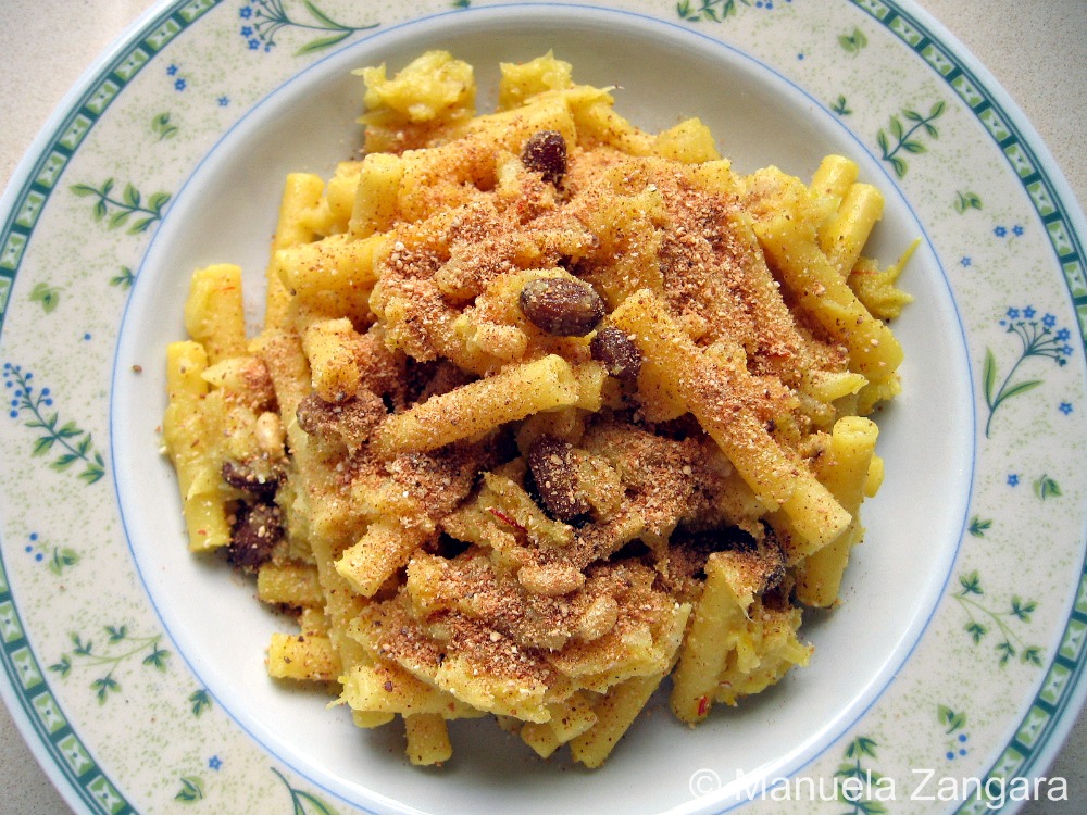 Manu: la adoro questa pasta: l’ho appena fatta recentemente. Ma non avevo pensato di aggiungere lo zafferano, che la rende cosi’ bella dorata. Continua questa serie stupenda…per favore!!!