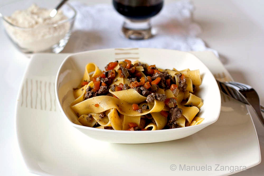 As I already said in my Chicken Liver Parcels – Fegatini al cartoccio post, I never enjoyed eating liver while growing up, with the exception of chicken liver. There are 2 dishes made with chicken liver that I have always LOVED: one is the Parcels and the second one is the dish I am going to share with you today. This pasta with chicken liver used to be one of my favourite Sunday lunch dishes! I remember my dad would often make fresh egg pasta while my mum would prepare the sauce. It was a real treat! And what’s not to like? It is a delicious dish… the sweetness of the carrots compensates for the slight bitterness of the liver and the grated Parmigiano Reggiano makes it even better. Enjoy!