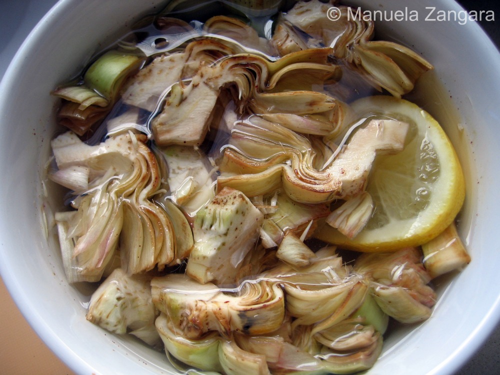 NOTE: Keep the sliced artichokes in water with a little lemon juice to prevent them from turning black.