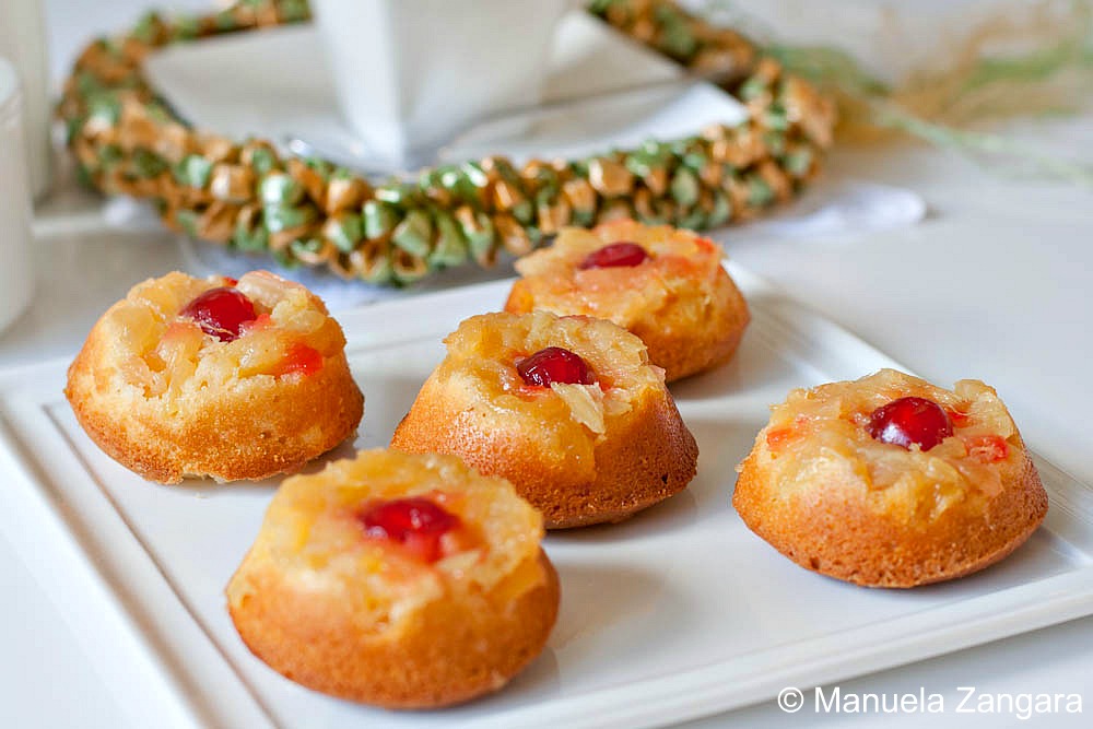 Manu, these little tea cakes look so cute and so tasty…love the pineapple upside down in little bites. Perfect for any party…and anytime 🙂