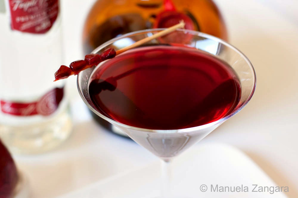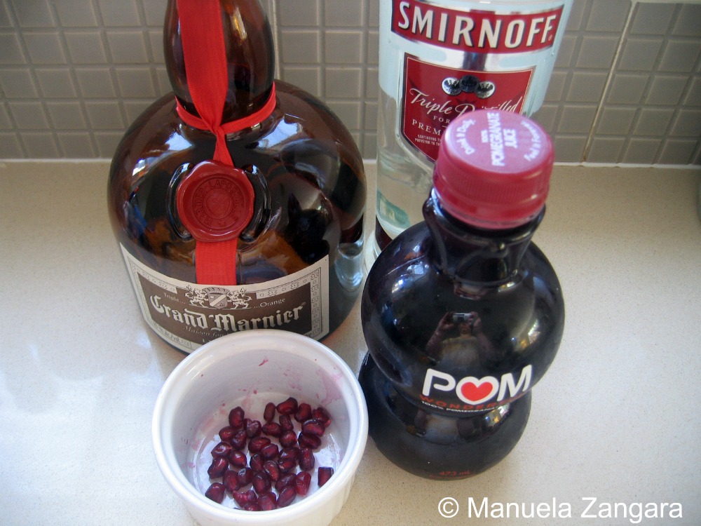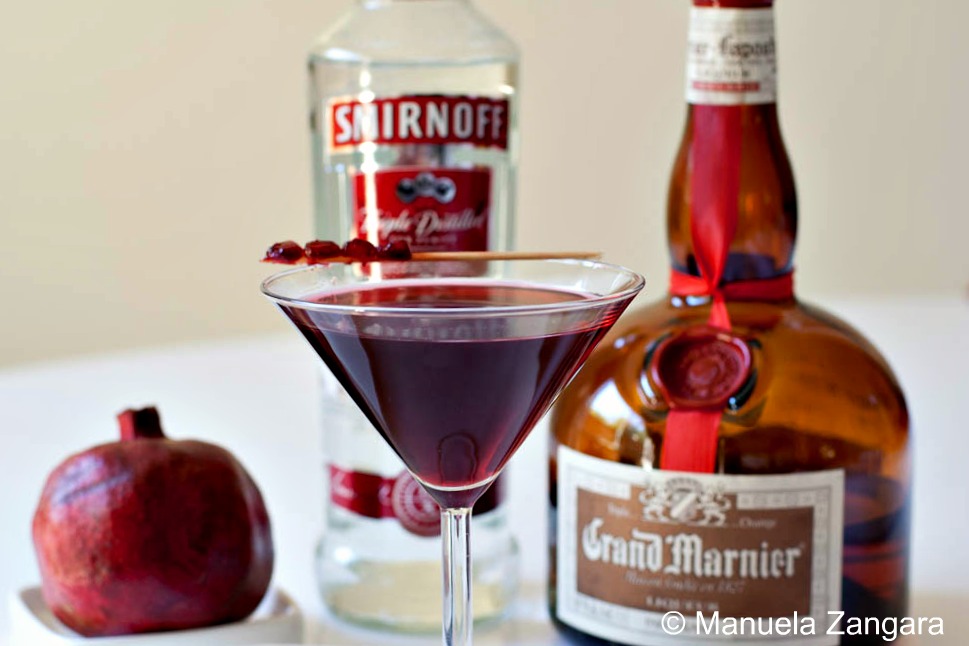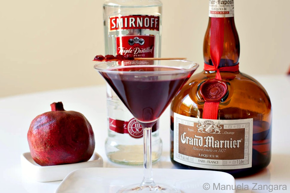 I always associate pomegranate with Christmas and New Year. It is very common to see it on an Italian table during the holidays. I love its intense ruby colour and the juicy, yet crunchy texture of its seeds. I think it is one of the prettiest fruits that exist! Being very common in the Mediterranean areas, I thought it would make the perfect ingredient for one of the drinks for the Sicilian Street Food New Year’s Eve Party that I organised as part of Foodbuzz’s 24×24 program. It is not technically a “Martini”, as it does not contain either Gin or Vermouth, but I guess it is simply named after the cocktail glass it shares with the Martini.