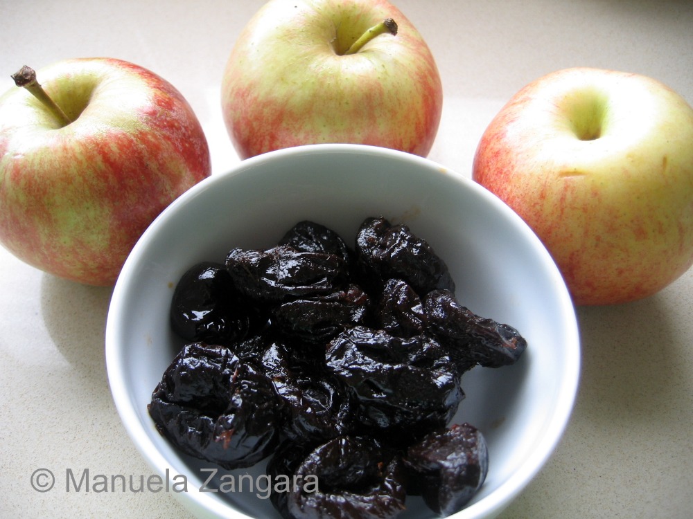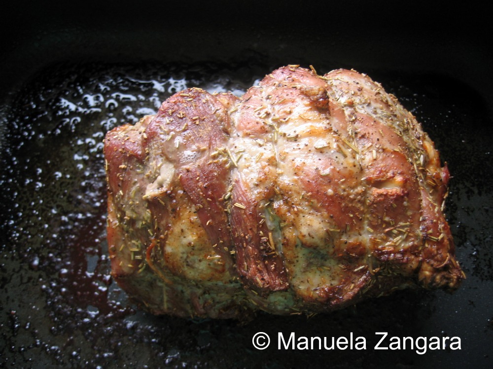 This is another one of the dishes I have learnt from my mom. She used to make it often on Sundays and it is a fantastic and juicy roast. I guess apples and pork are a classic combination, but it is one that I never get tired of. The sweetness of the apples goes very well with the tanginess of the white wine and it helps make a great sauce. The addition of prunes gives the sauce a hint of caramelisation which to me is always a plus. You can serve it with mash, a green salad or my baked potatoes with garlic and rosemary. Buon appetito!