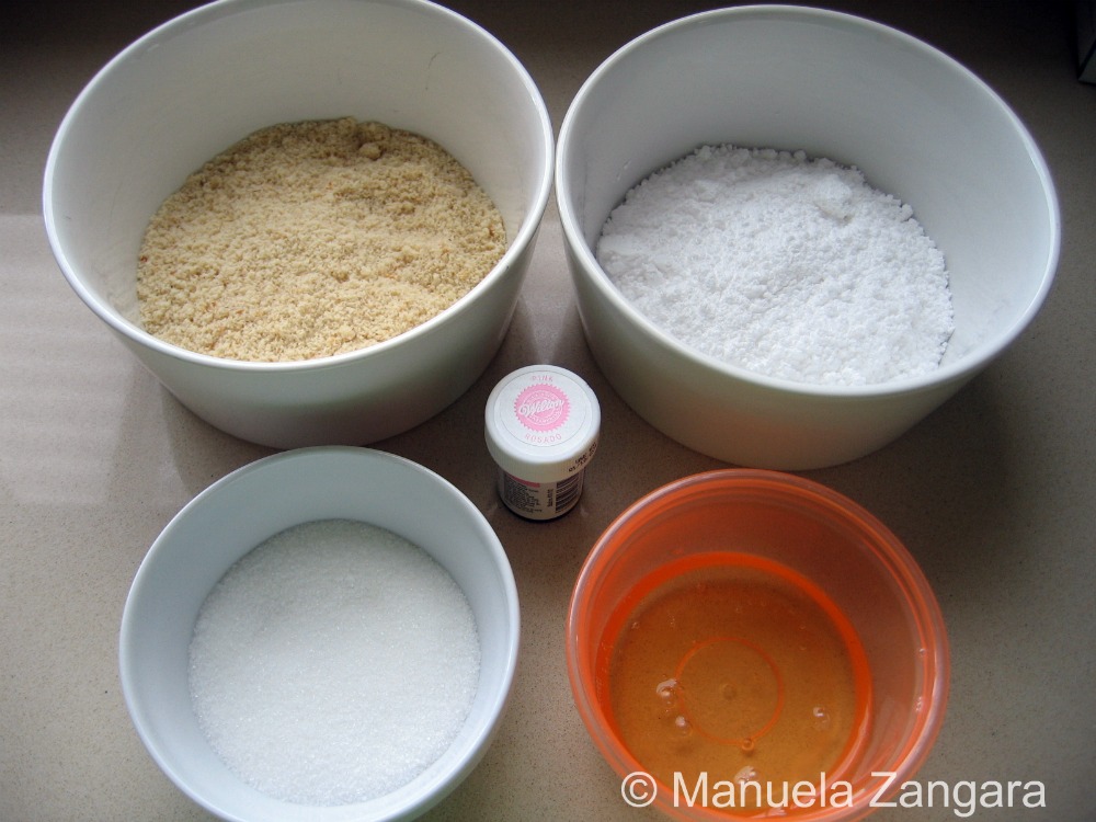 Now you are all set to start making your macarons. Sift the almond meal and the pure icing sugar and mix them together in a large bowl.