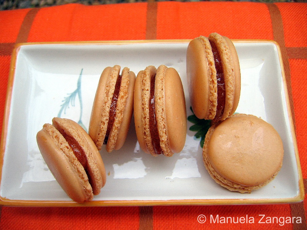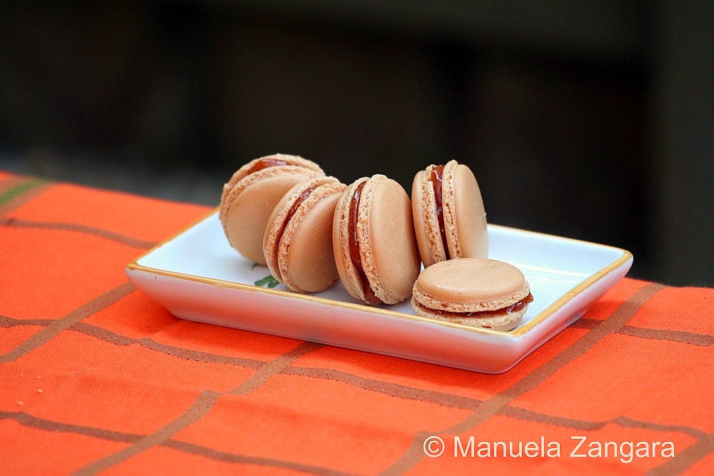If you have read my post on Chocolate Macarons with White Chocolate and Mint Ganache, you already know that baking the shells is actually what gives me the most problems. I am still experimenting with my oven as I find that when I bake light coloured shells at 150°C (fan forced) instead of 160°C they still tend to slightly change colour! Anyhow… in this case I did not mind as they paired well with my quince jelly! So, depending on your oven, you can bake them either at 160°C for about 12 minutes, or at 150°C for 15-17 minutes… it is all about experimenting and getting to know your oven. I also suggest that you buy a small oven thermometer if you have problems, to check the actual themperature of your oven (mine for example heats up to 20°C more than what I set it to)!
