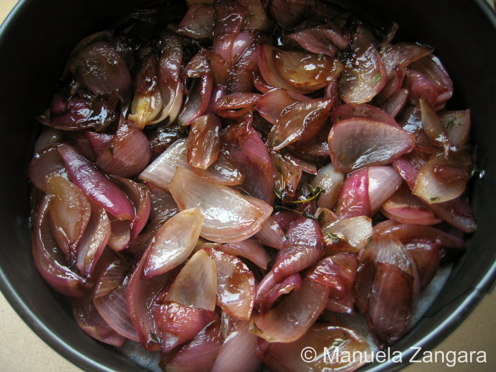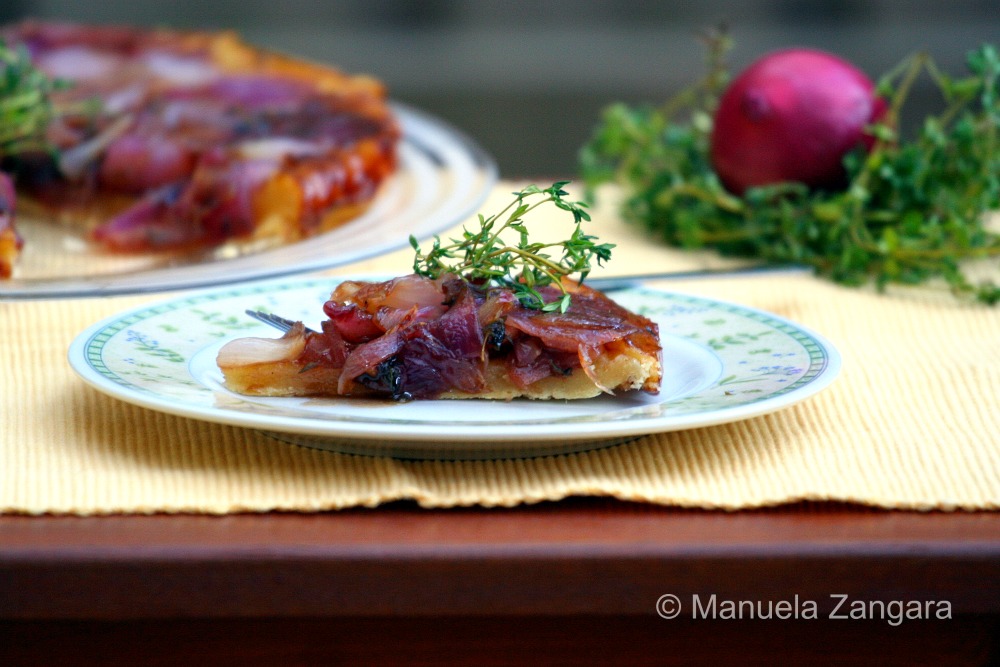 We love tarte tatin, we love red onions, we love sweet and sour. This is for us. Here in Milan caramelized onions with pastry are a trend these days in upscale restaurants.