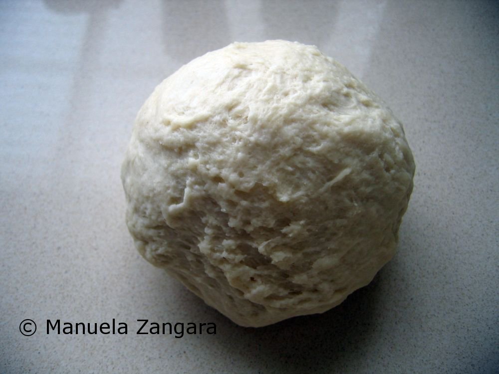 Put all the ingredients in a mixer with a dough hook and knead the dough adding the lukewarm water little by little until the dough comes together. You can knead this by hand as well.