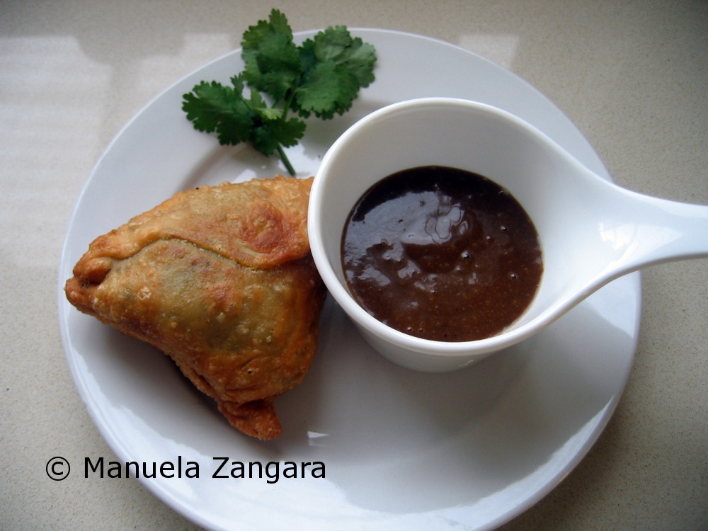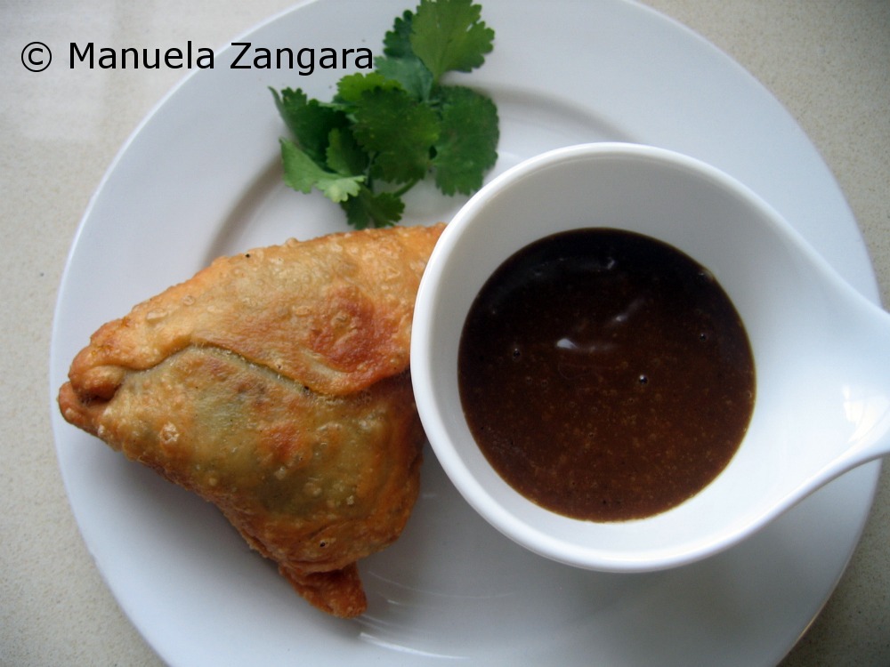 Samosas are one of my favourite Indian snacks. You can find them all around the world and it would be hard to find someone who has never eaten one. They are best eaten warm and crispy… I like them so much that I had to learn how to make them at home, as I believe that home-made food always tastes better. I make them with 3 different fillings: with potatoes and peas, with minced lamb and with both fillings mixed together (which is my family’s favourite). I am going to give you the recipe of both fillings, so you can chose which ever one you prefer to make. Serve them hot with some sweet and sour tamarind chutney (imli ki chutney) on the side.