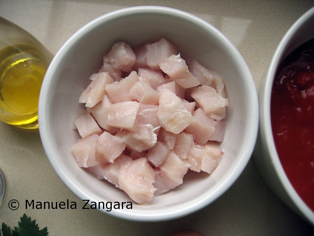 Cube the swordfish into 1.5 x 1.5 cm pieces and keep aside.