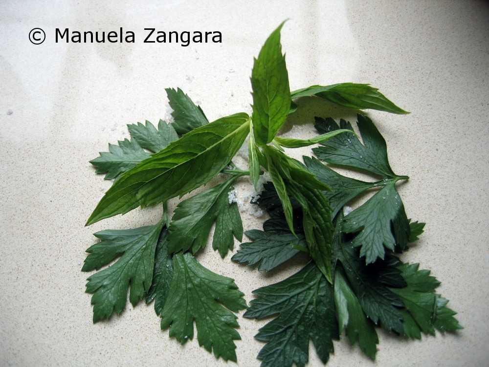 This is another typical Sicilian dish. Sicily is very famous for its fresh fish. This pasta can be made with different fresh herbs. I personally like it with continental parsley and mint, but basil goes well with it too. It is usually served with busiati and you can have a go at making some by following my step by step instructions on How to make busiati in the Techniques page of this site, or you can easily serve it with short pasta. This time I have chosen to make it with sedanini lisci where lisci means smooth and to serve it with some finely grated Parmigiano Reggiano on the top. So, once again, I seem to be breaking some rules. Ridged pasta (rigata) is usually considered a better option for tomato based sauces as they tend to hold more sauce, but since fish has a delicate flavour, I wanted something more refined and less rough. As for the cheese, I already broke the “you-should-not-serve-cheese-on-pasta-with-fish” rule when I made Farfalle with salmon as to me taste is more important than rules and I think this pasta tastes so much better with Parmigiano than without it.