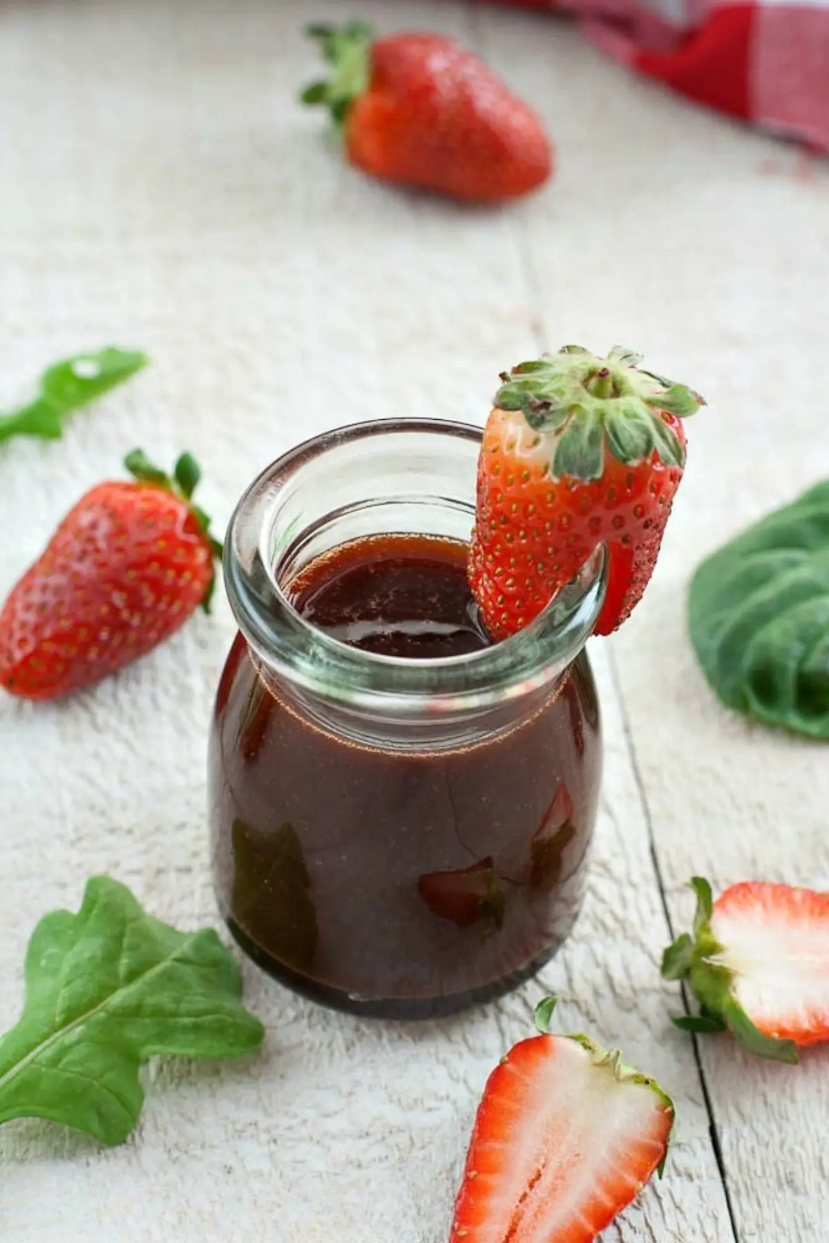 I have heard of using a little balsamic with sugar to bring out the flavour of strawberries but a strawberry salad dressing is new to me. Looking forward to trying your recipe!