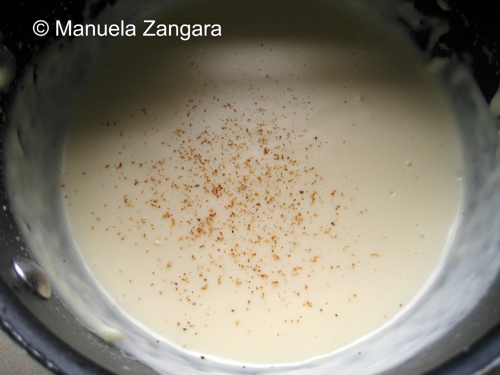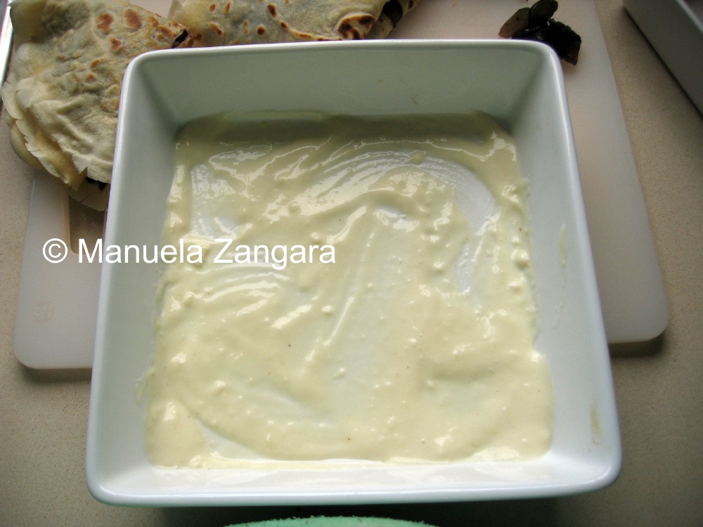 Make half the dose of the béchamel recipe that you find in How to make béchamel sauce in the Techniques page of this blog.