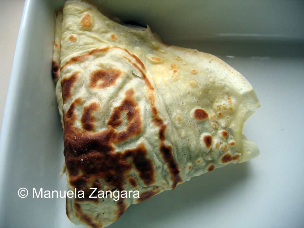 As soon as the crespelle are cool enough for you to handle them, you are ready to fill them.