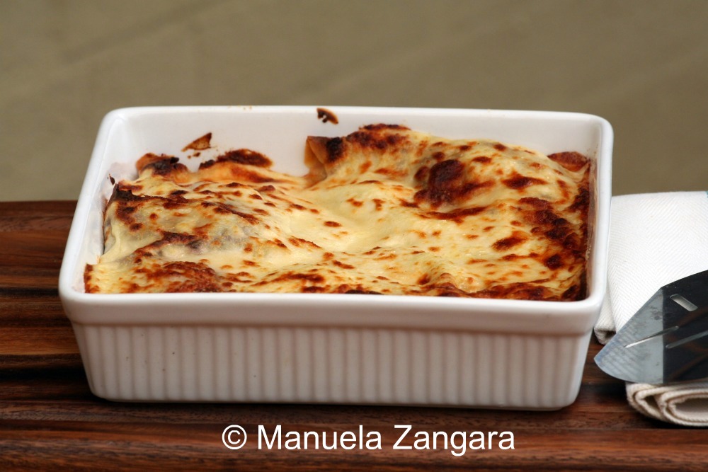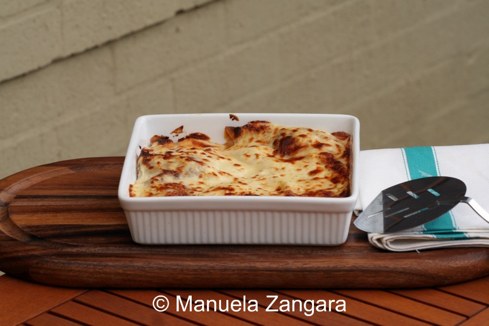Put the crespelle in the dish on a single layer (it’s ok if they overlap a little) and cover them with the remaining béchamel sauce. Sprinkle the top with some thinly grated Parmigiano Reggiano and bake in a preheated fan forced oven at 180°C for about 15 minutes or until you get a nice golden crust on the top. Serve warm.