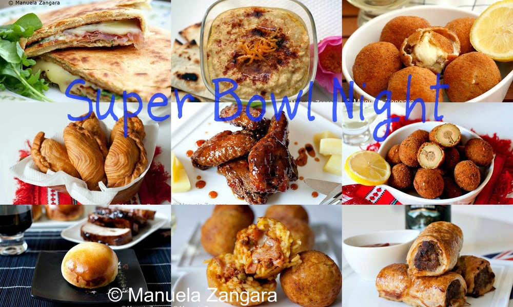 I must admit I am no football lover.  In fact, the only football I like is soccer… I am Italian after all.  After reading quite a bit about the upcoming Super Bowl though, I started thinking that the most fun part about the event would be watching it with friends and family while sharing some yummy snacks.  So I thought of compiling a list of all the food I think would be great to eat on such an occasion.  Obviously, this is all food I consider “party food” or “finger food” that is easy to prepare, serve and eat and that I have published during the last year.  Feel free to use this post also if you need ideas on what to serve for your next buffet or to take to a potluck… it is not strictly “Super Bowl food”!