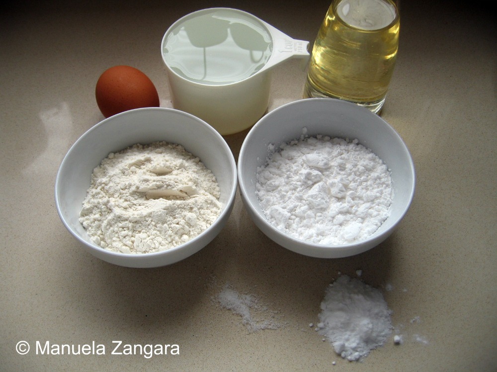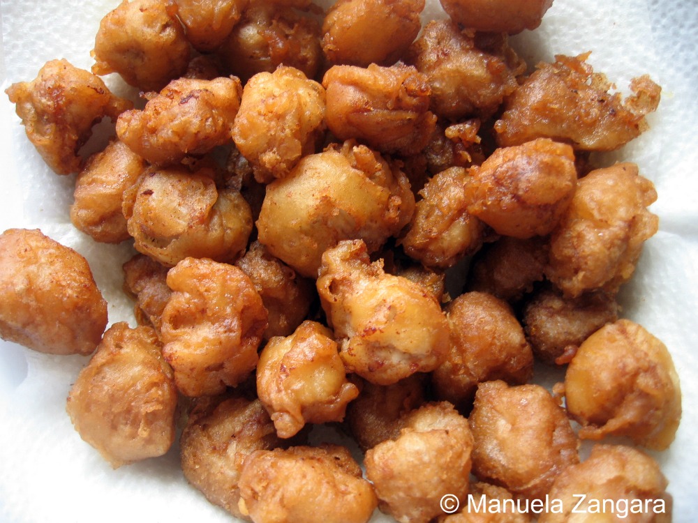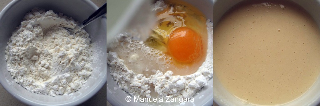 To make the batter, mix the dry ingredients together and then add the egg, vegetable oil and water to form a thick batter. NOTE: add the water little by little, as you may require a little less than ½ cup.