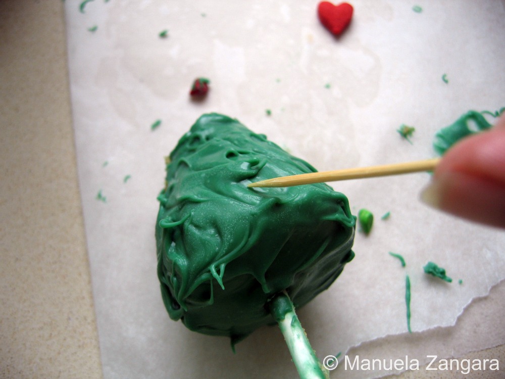 After making Dorothy the Dinosaur cake pops for my youngest daughter’s birthday, I had some green candy melts and some cake left over. I froze the cake and decided to male some cake pops for Christmas. Having green candy melts, making Christmas trees was the easiest thing that came to mind.