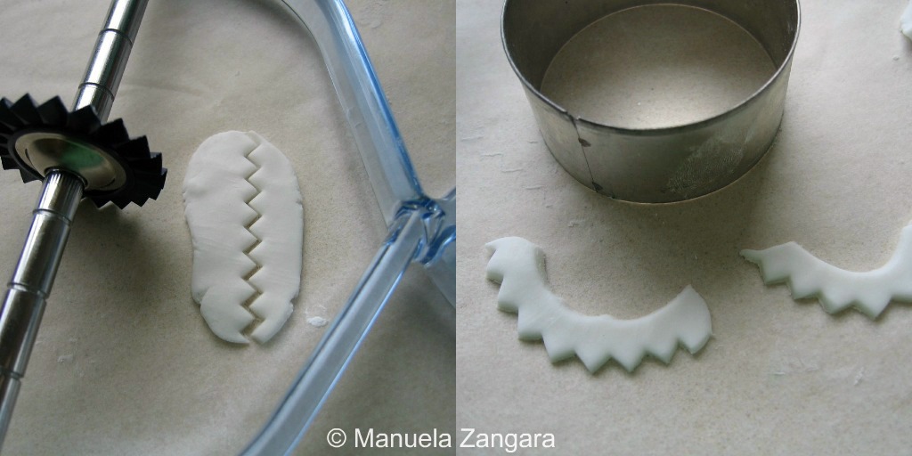 To make her teeth and the white saw-tooth part of the tail, I used a pasta cutter.